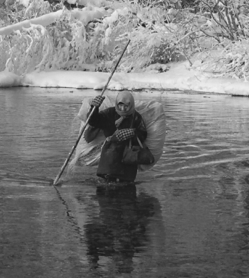 - Пошла я утром на реку за рыбой. Знала, медведи ходят. Ерофей предупреждал: бери с собой ружье, собаку. А я решила: быстренько схожу, рыбы принесу. Праздник, хотела накормить всех пирогами. Довольная, выбираю рыбу из сетки. Вдруг вижу краем глаза что-то черное. Разворачиваюсь: медведь! Мы в трех метрах друг от друга. Сначала страха не было. Только мысль: что делать? Бежать нельзя, агрессию показывать тоже. Пока раздумывала, навалился животный ужас. Я заорала тааак! Медведь отскочил метров на 15. Но остановился, повернулся и стал раскачиваться на меня: вот-вот набросится. И тут я закричала еще раз. Ооочень сильно. И вдруг он ушел – в кусты. А там такие заросли. Меня начало потряхивать: если он за кустом? Надо идти домой, но как? Ноги подкосились. Я сидела час. Молилась, плакала. А что делать-то? Ну, пойду! Но он тоже, видимо, ждал. Гляжу, идет через брод. Все-таки разошлись нормально. Я домой вернулась: голоса нет, сорвала, еле говорю. Это мне тоже урок был: не ходи без благословения.