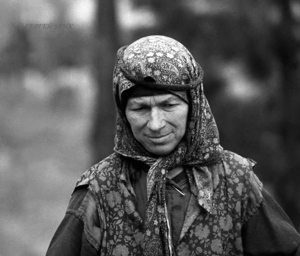 - Вместе с тем у нее исключительно чистое тело. За счет чистоты духовной и чистоты воздуха (вокруг первозданная тайга). Никаких вшей, паразитов. Руки моет часто, морщинки у нее глубокие, ногти в земле. С мирской позиции – неухоженность. А для нее в порядке вещей, всегда так жили. Когда она одна и знает, что гостей не будет, может вообще не умываться. Ходит – лицо все в саже. А вертолет услышит – тут же умоется, платочек красивый наденет. Такая… может и пококетничать.